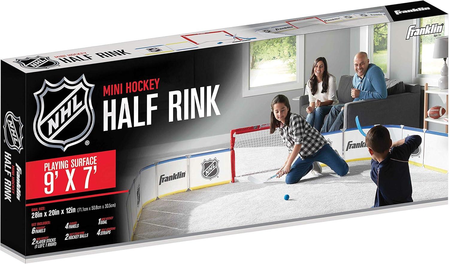 Franklin Sports Mini Hockey Rink Set – Half Rink Knee Hockey Goal, Mini Sticks, and Ball Set – Indoor Mini Hockey Rink – Official NHL Licensed