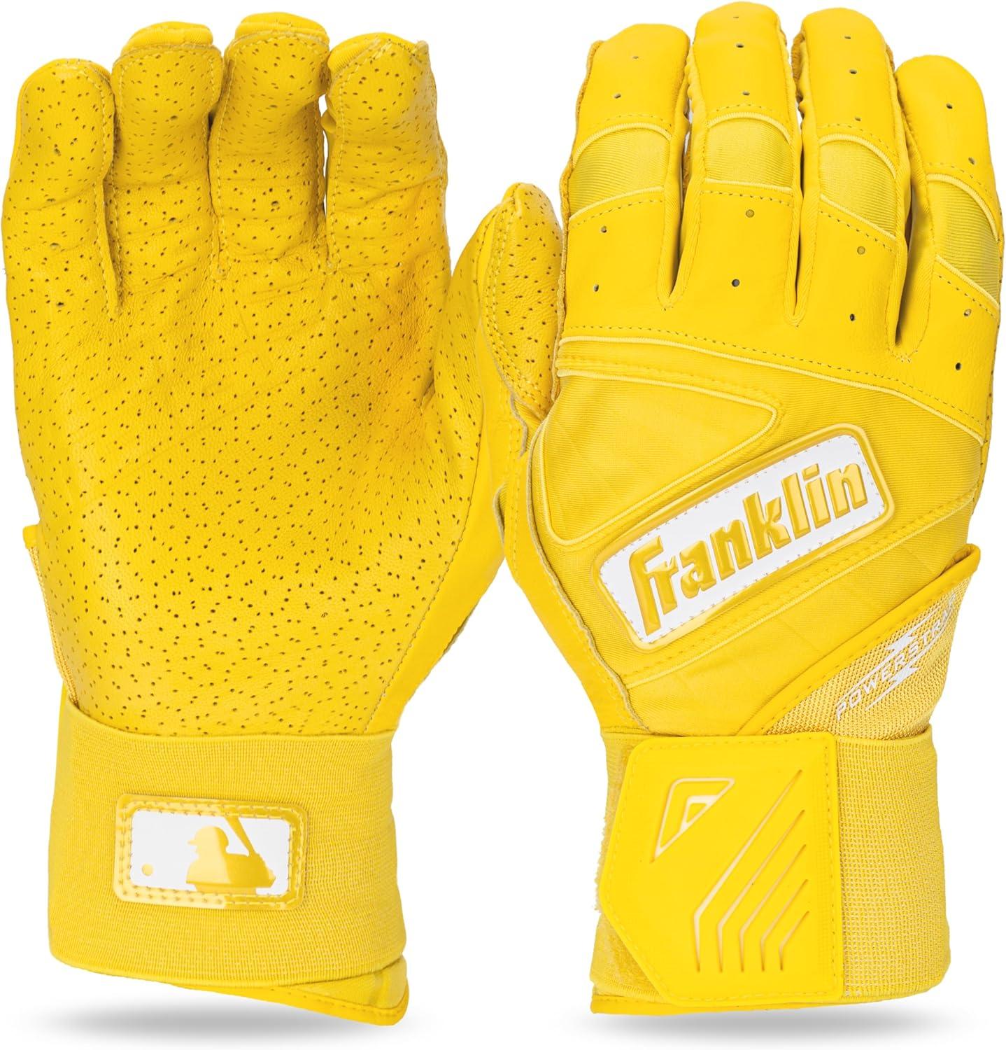 Franklin Sports MLB Batting Gloves – Infinite Powerstrap Baseball + Softball Long Cuff Batting Gloves – Adult + Youth(Yellow)