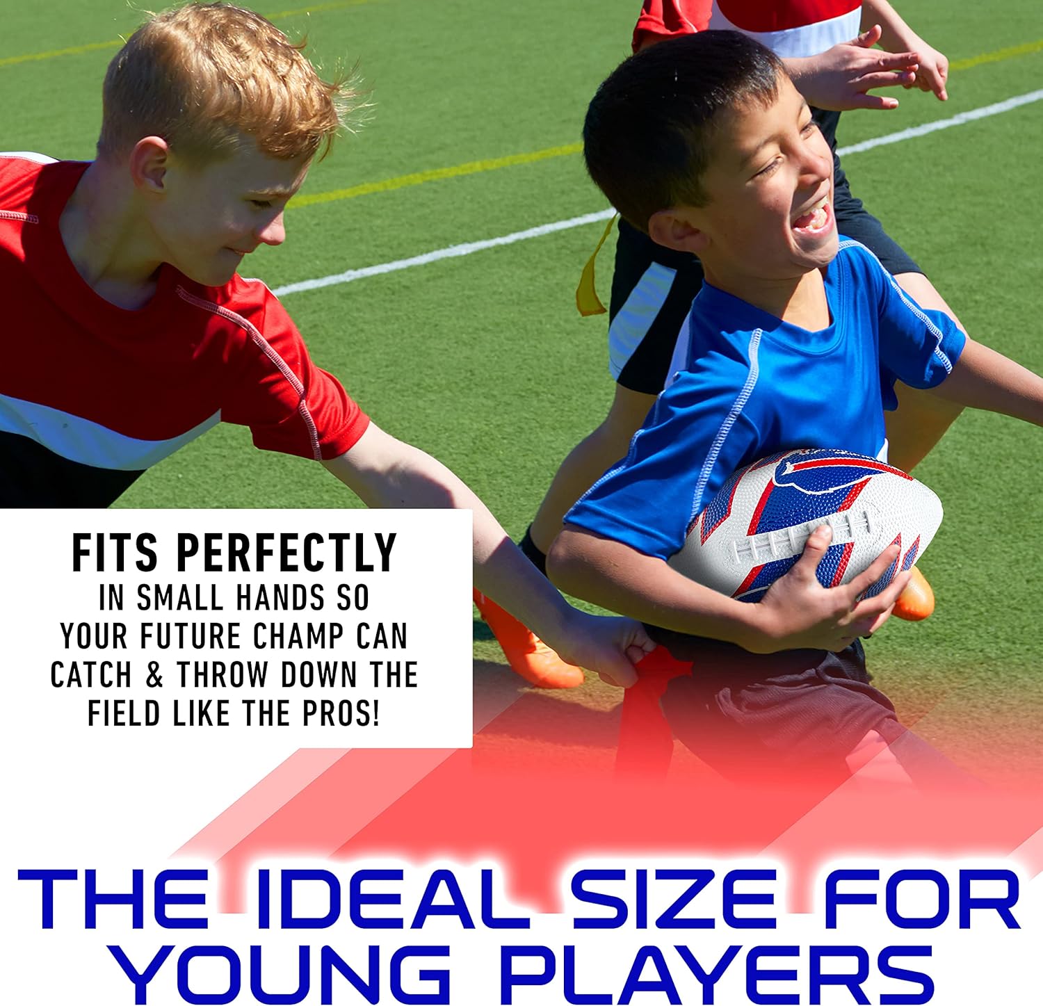 PERFECT FOR KIDS: This 8.5″ mini football is the ideal size to fit in a young players hands so your future champ can catch and throw down field like the Pros!