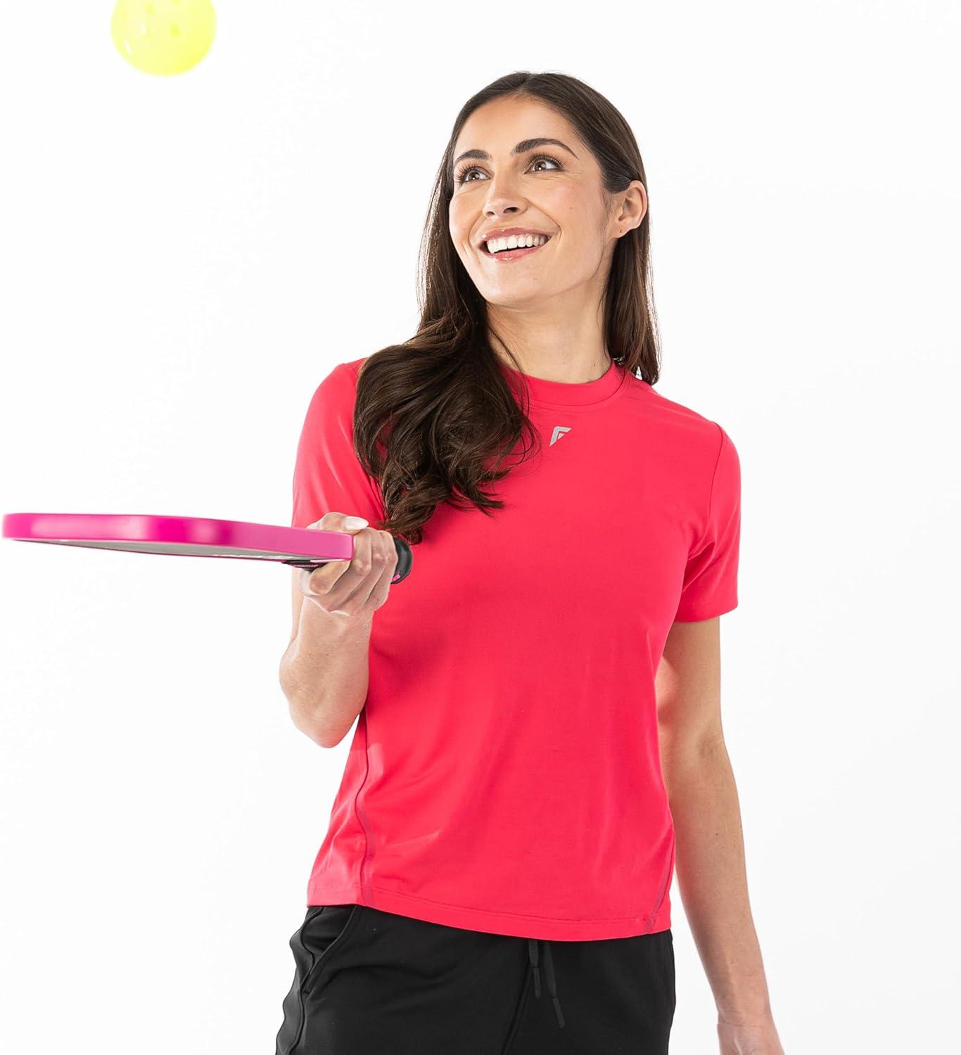 Franklin Sports Women's Active Performance Pickleball Top - Short Sleeve T-Shirt - Running, Yoga, Gym + Lifestyle Tee(Pink)